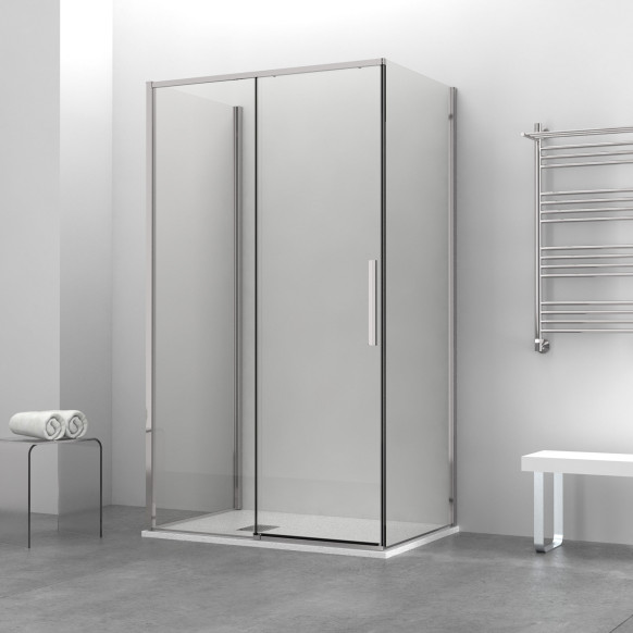 Angolare quadrato. Per una corretta installazione a filo pavimento è consigliabile prevedere 1,5 cm dal bordo esterno del piatto doccia, compatibilmente con le regolazioni indicate. Le ante fisse e quelle scorrevoli sono corredate da un kit di guarnizioni di tenuta verticali, pensate per isolare al meglio la cabina doccia ed impedire le fuoriuscite d'acqua. Grazie al suo sistema ad incastro, bastano pochi semplici passaggi e il box è pronto.